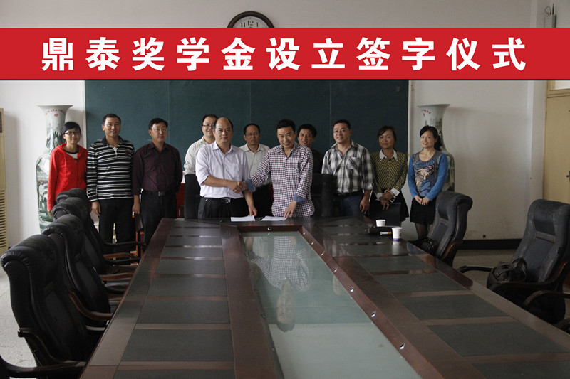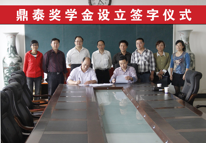 经理李保同和鼎泰公司总经理石的根代表双方签字。据悉,“鼎泰奖学金”首次签约有效期为三年,鼎泰公司每年提供壹万五千元作为奖学金,奖励土管、地信和农业水利等专业的优秀学子。