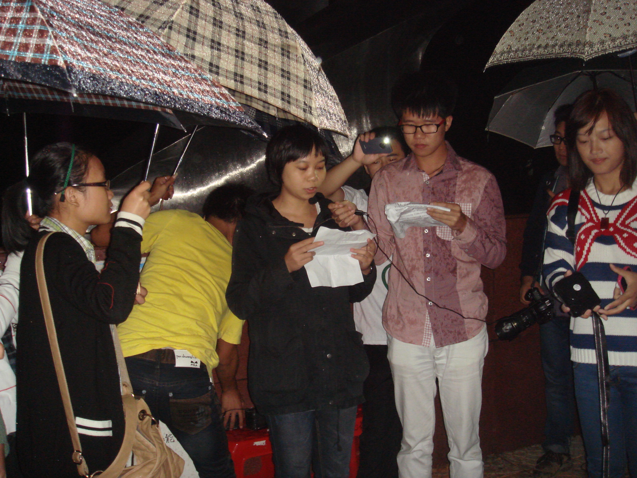 上午,爱心社成员在南区门口摆点对活动主题进行宣传。同学们积极参与爱心社举办的全国爱粮活动,并踊跃在百人横幅上签名。“节约粮食,浪费可耻”的精神在同学们笔尖中传递。并有许多人积极加入我们体验饥饿的行列当中。晚上,副社长葛岩主持了烛光祈福活动,并由全国义工中心志愿者周俊婷致辞。虽天公不作美,但瓢泼大雨仍然阻挡不了大家对活动的热情,依然执着地坚守在广场上等待着祈福活动开始。并有新华社的记者进行现场访问,大家通过参与这一活动,进一步意识到了“爱粮节粮”的特殊意义。