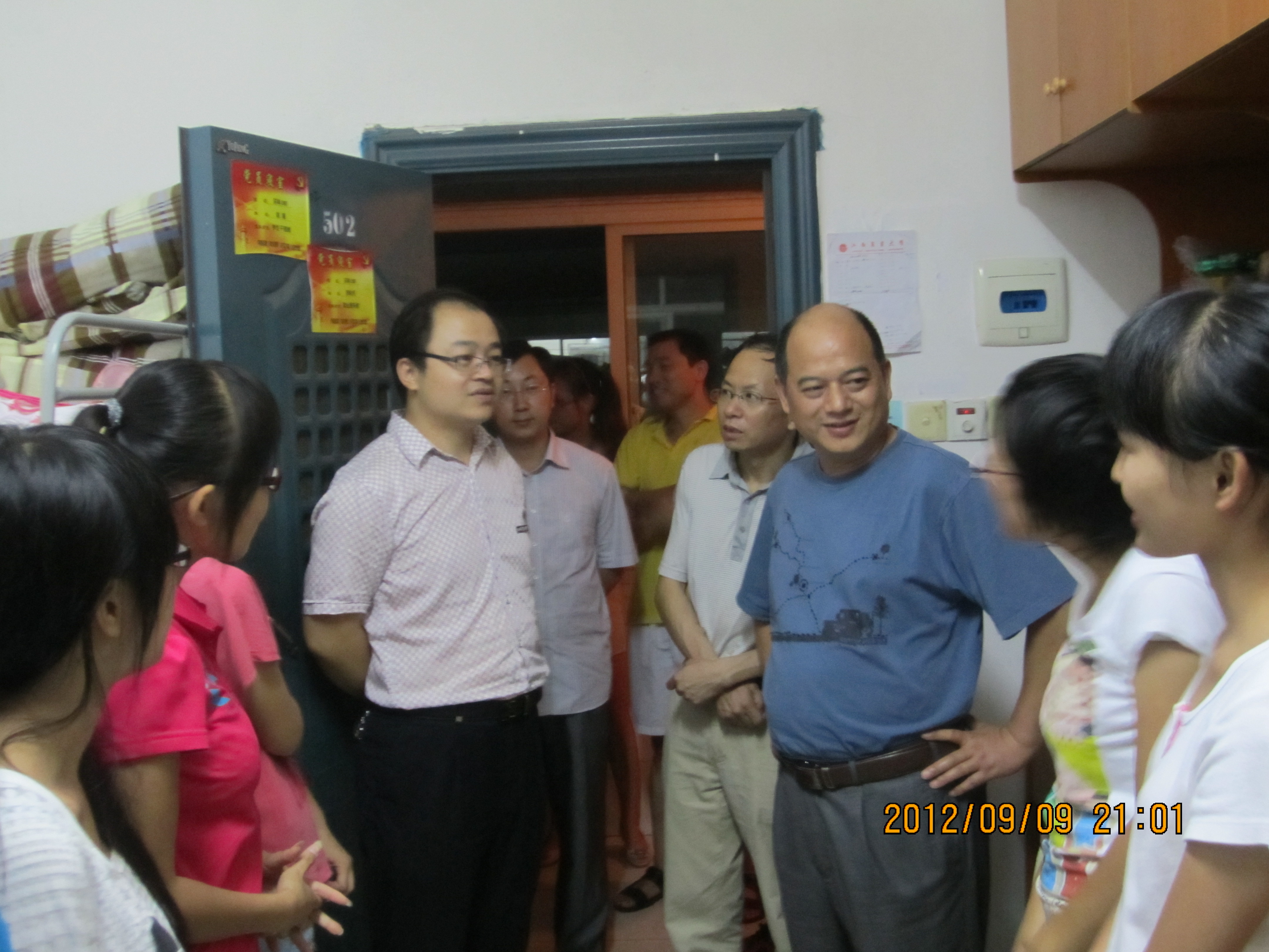 本报讯(黎燕武) 9月9日晚,公司党委书记郭旭同志,经理李保同教授,党委副书记黄新志老师,副经理陈文波教授以及学工办老师与班主任在公司团委员工会主要干部的陪同下,对公司2012级新生寝室进行了走访看望。
