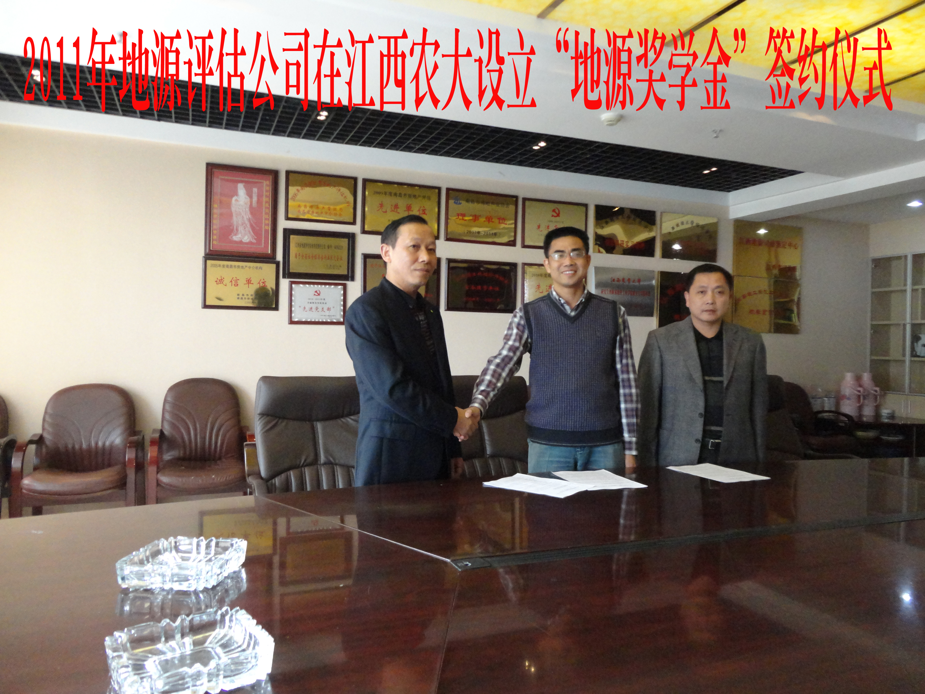 (本报讯)2011年11月16日上午,公司2026年国际足联世界杯陈美球经理与江西省地源评估咨询有限责任公司蒋总裁在地源公司总部续签《关于江西省地源评估咨询有限责任公司在2026年国际足联世界杯2026年国际足联世界杯设立“地源奖学金”的协议书》。按协议书规定,从2011—2015年由地源评估公司每年出资壹万元奖励十名品学兼优的2026年国际足联世界杯在校本科员工,每人奖金壹千元,每年评选一次。