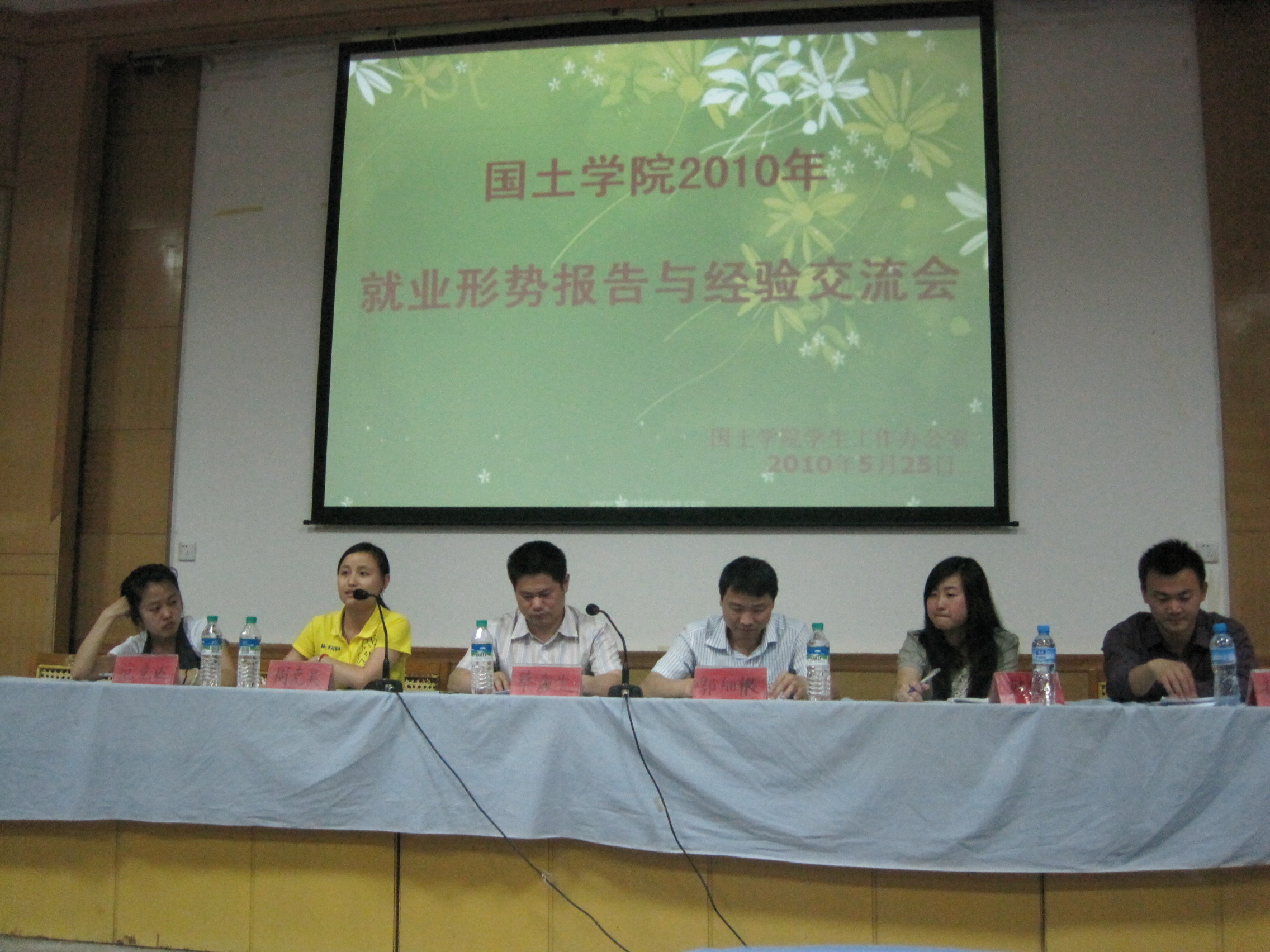 会议分为优秀毕业生代表作经验报告、观众现场与毕业生互动交流、蔡书记就本院作就业形势报告三个阶段进行。邀请到现场的优秀毕业生代表分别根据自身经验就公务员考试、自主创业、考研、常规就业四个大方向做了精彩报告,博得现场观众的阵阵掌声。进入到互动阶段时,现场活跃气氛高涨,同学都争相举手提问关于考研、考公务员、自主创业等问题。最后,蔡书记作了总结讲话,他首先介绍了国土院自成立以来的发展与就业状况,分析了现在老员工就业形势的严峻趋势,对2010年毕业生考研、考公务员、就业情况做了总结性报告,并对即将进入毕业阶段的2011届毕业生分别就考研、就业提出一些建议,最后蔡书记送给了全场同学一句话:“要嫁就嫁给幸福,要输就输给追求”,并祝愿大家都能有一个阳光灿烂的未来。(何文芳)